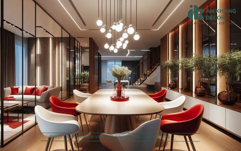 - Dự án nhà phố New City An Phú 426m2 với sắc đỏ Burgundy | An Khang Decor